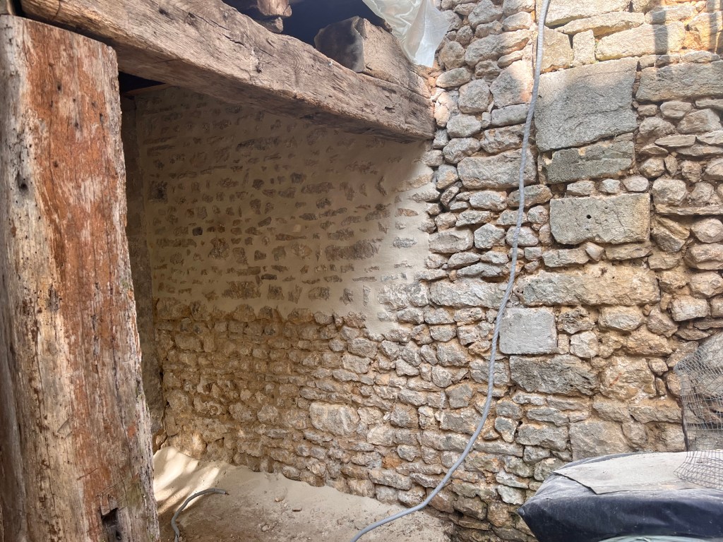 Rejointoiement chaux en cours de réalisation