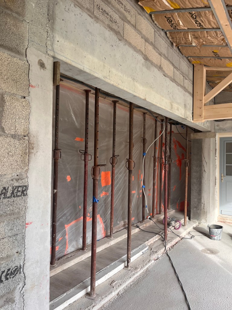 Ouverture par linteau métallique sur longue portée.