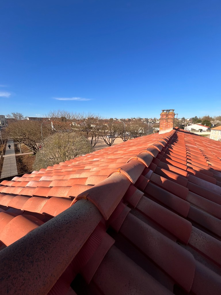 Couverture en tuiles terre cuite avec faîtage à sec